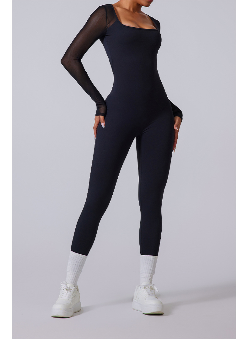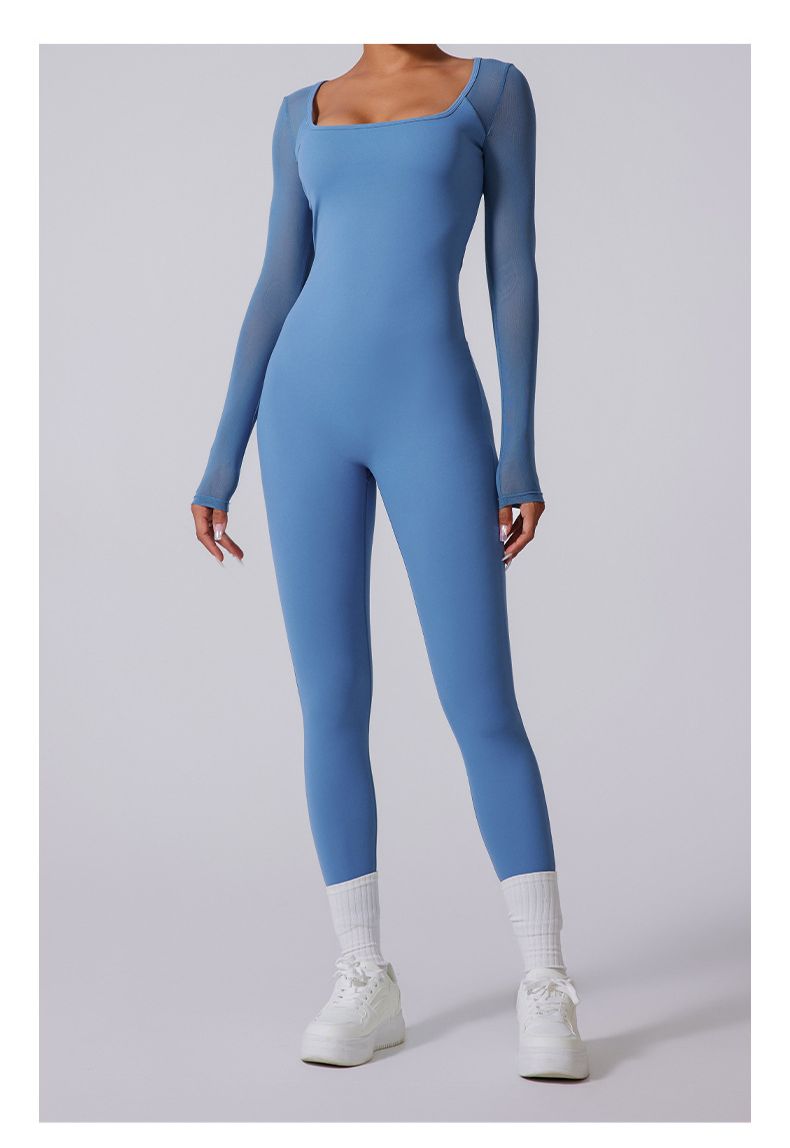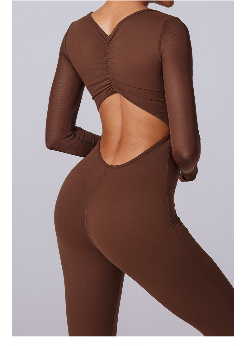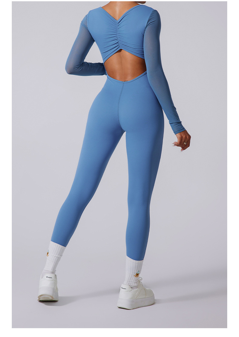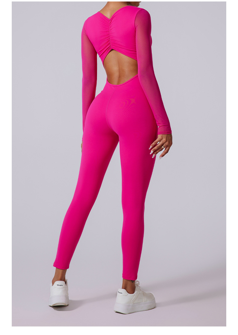 Un mono de manga larga de manga larga plisado, Recortado, Todo en uno y malla sexy en la espalda