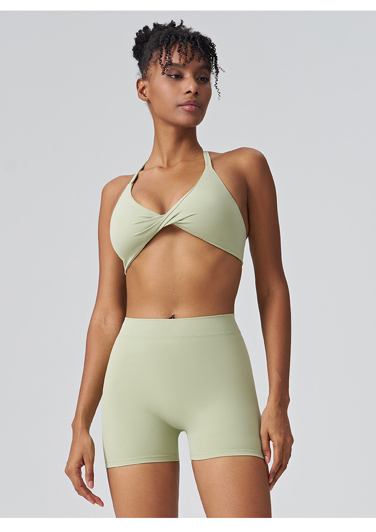 Pantalones cortos finos y transpirables de color melocotón con cintura en V