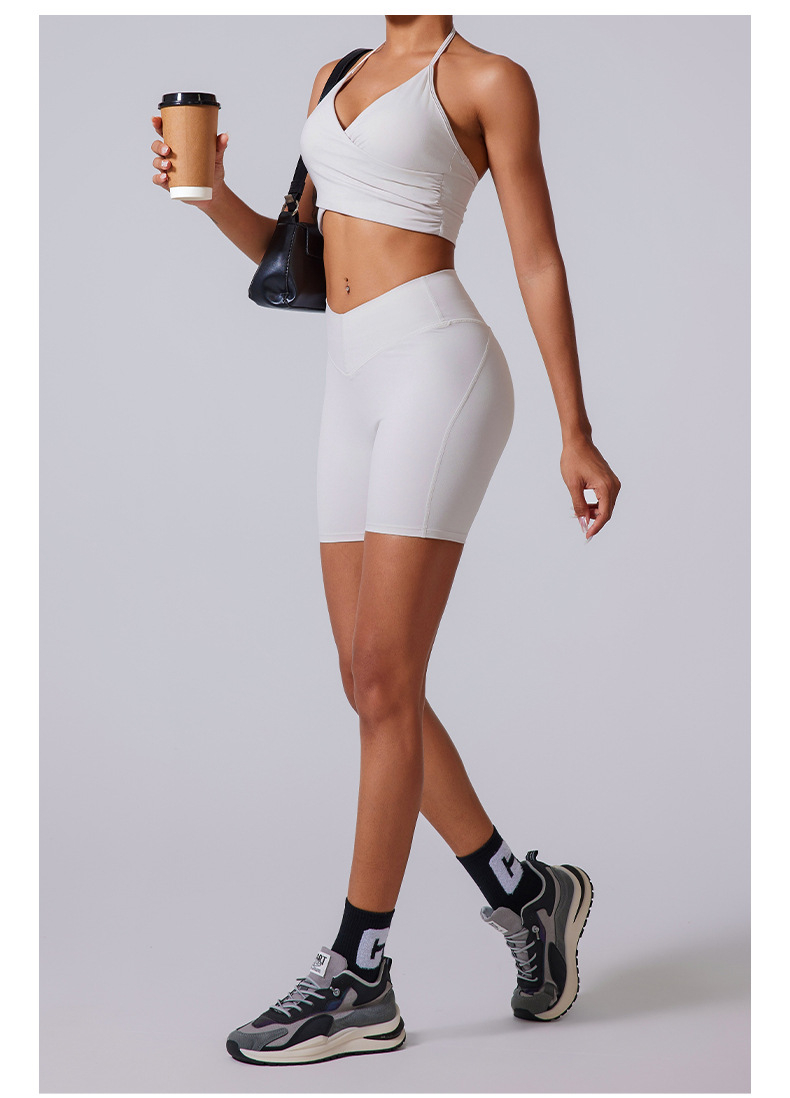 Pantalones cortos de forma alta elástica en la cadera melocotón Pantalones cortos nude con diseño de cintura en V