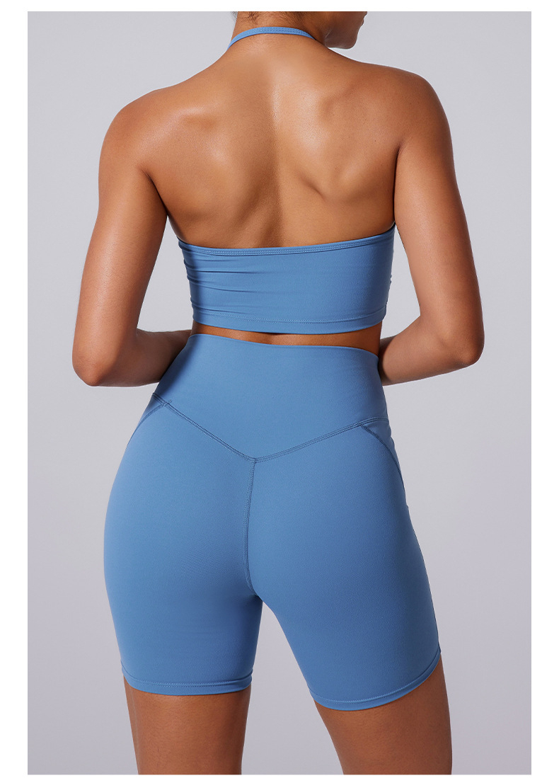 Tirantes finos sin espalda cepillados y cuello halter de secado rápido con sujetador de cuello halter escalonado cruzado