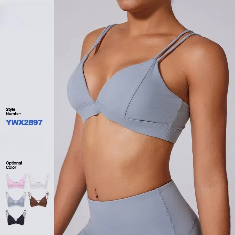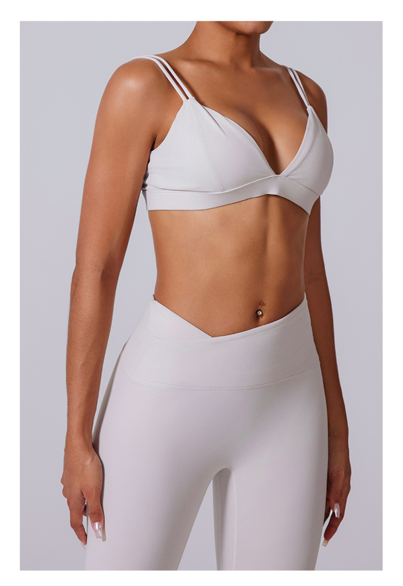 Tirantes finos gemelos con caparazón estilo resort en V profunda Sujetador deportivo cruzado versátil