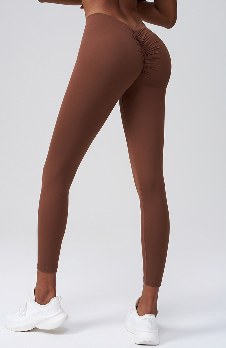 Levante los glúteos sin vergüenza y use pantalones de gimnasia fuera de los glúteos color melocotón