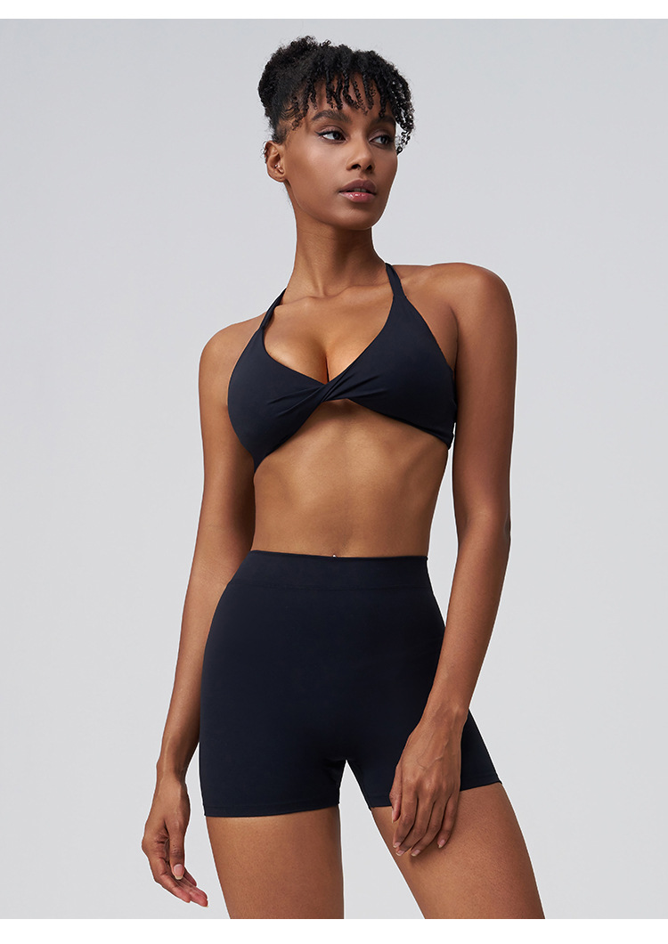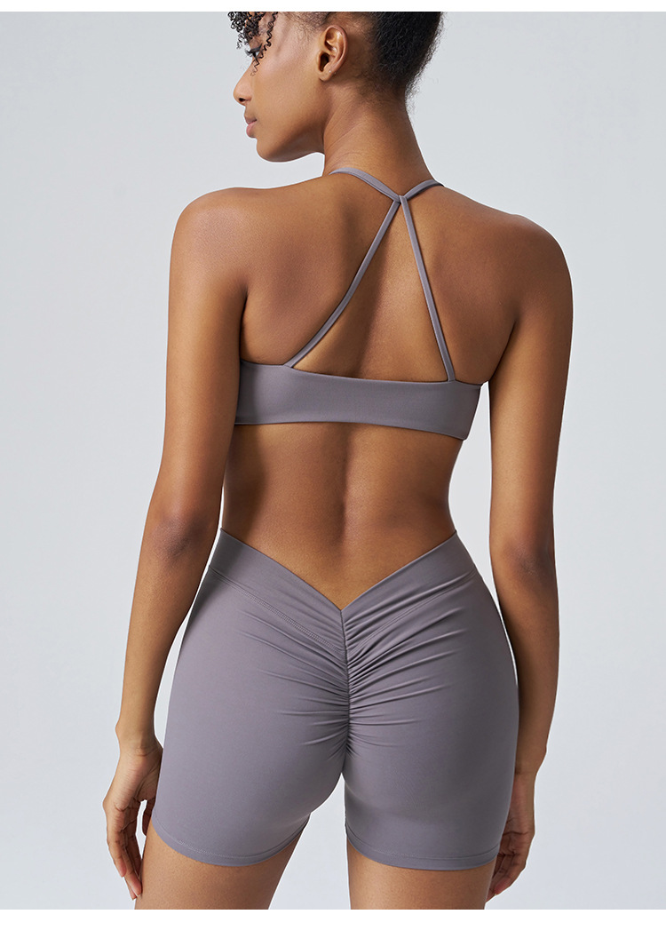 Traje de gimnasia de levantamiento de glúteos melocotón con correa de belleza cruzada
