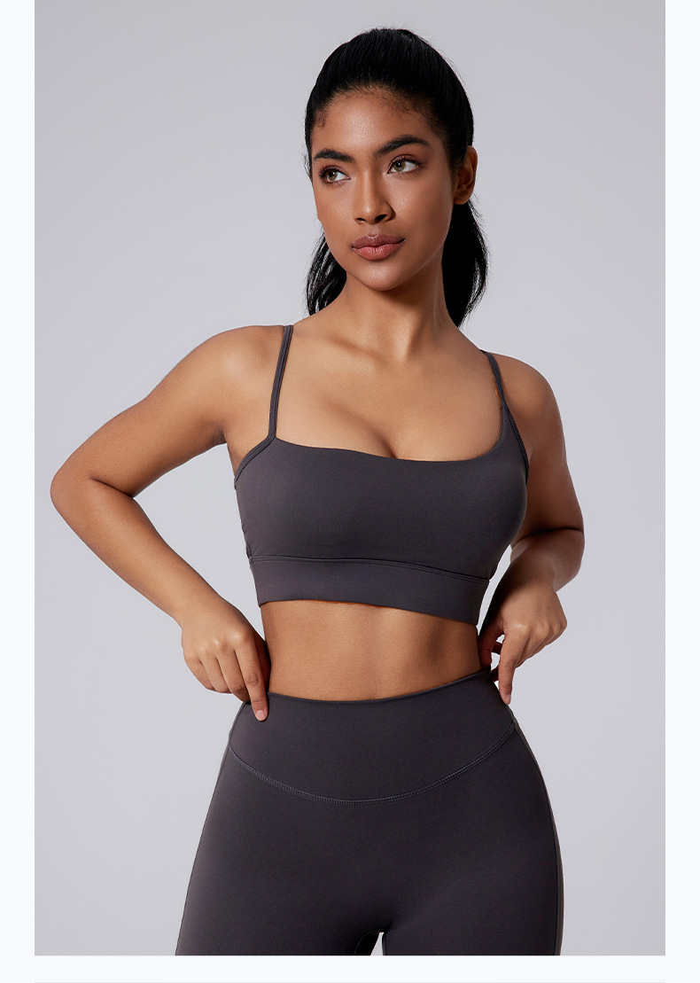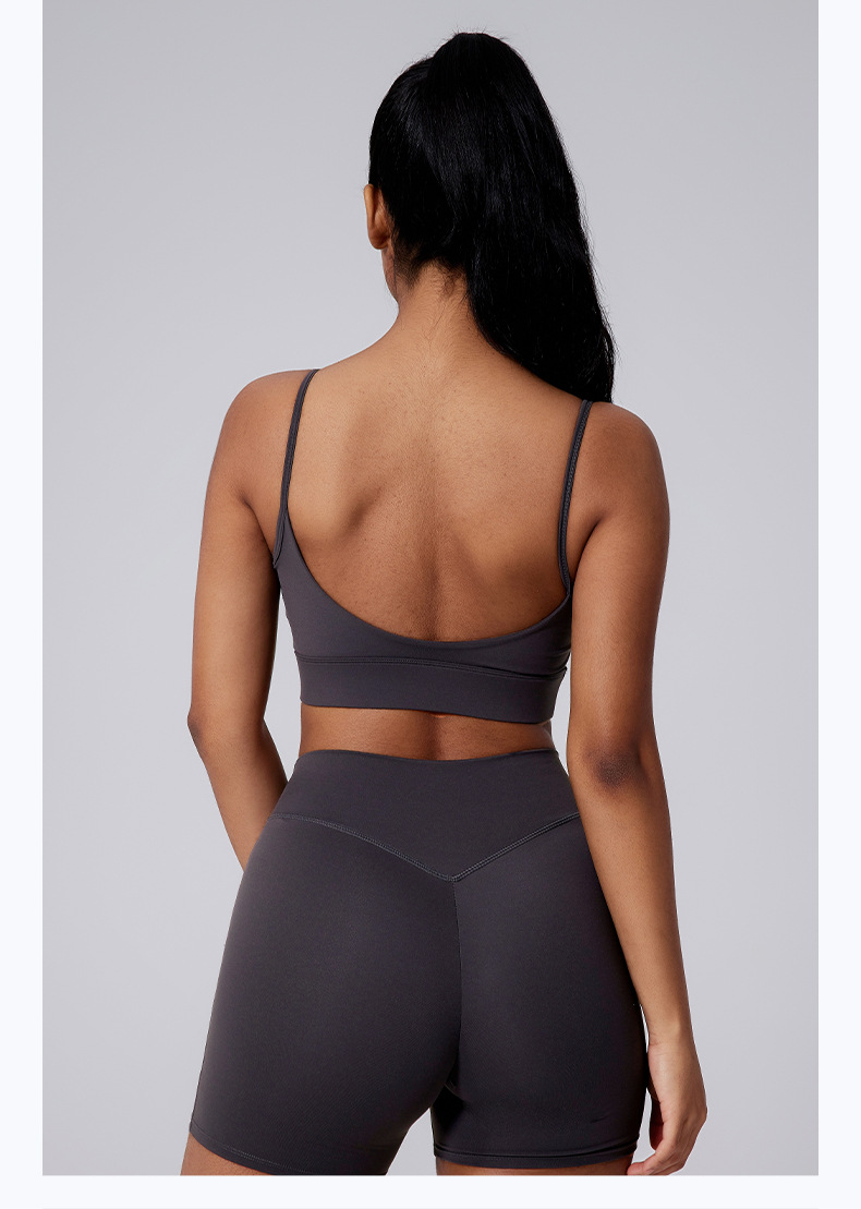 Sujetador deportivo asimétrico con gran excavación hacia atrás, Sensación de nud al aire libre