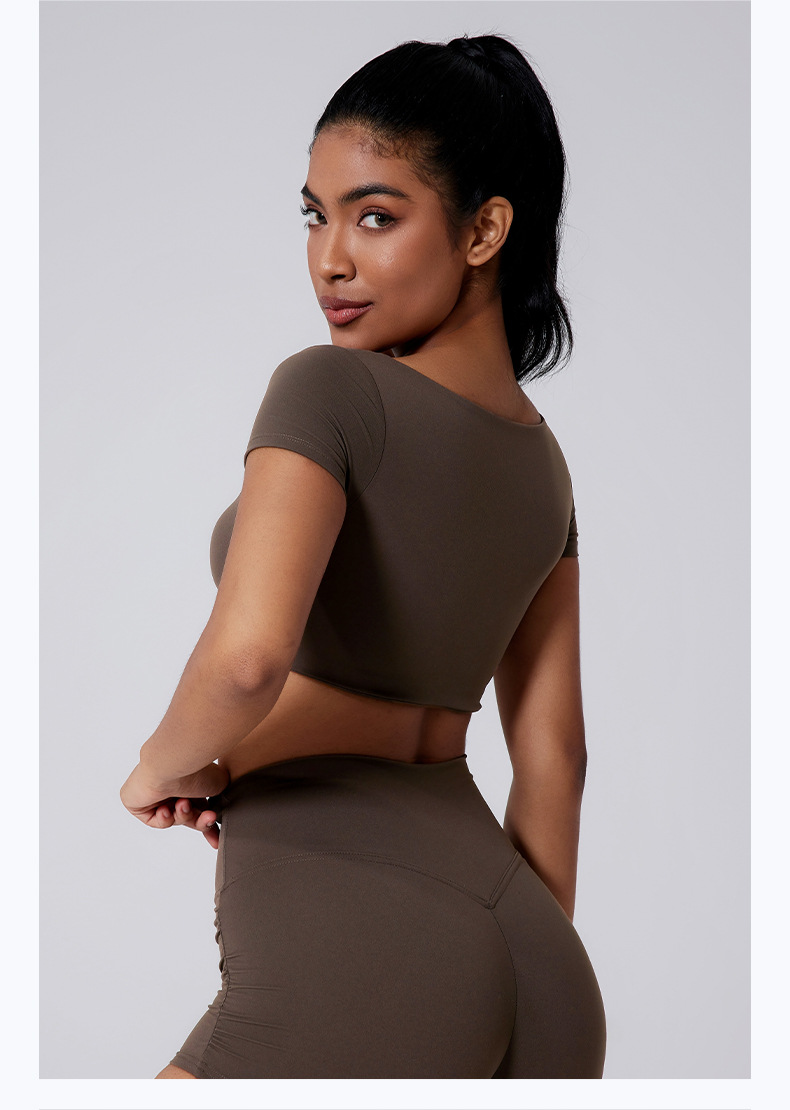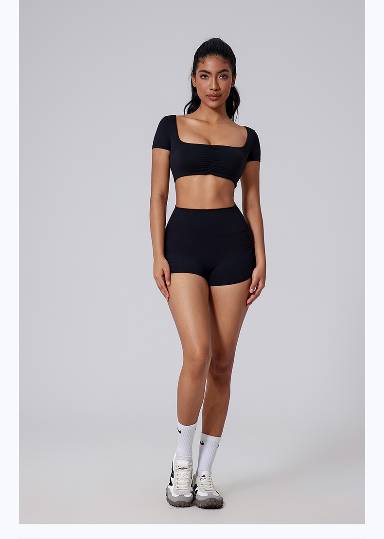 Escote generoso, Cintura abierta, Plisado sexy, Mangas cortas deportivas de color sólido