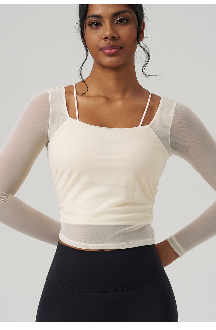 Copas fijas, Slim fit, Paneles de malla delgada con mangas largas