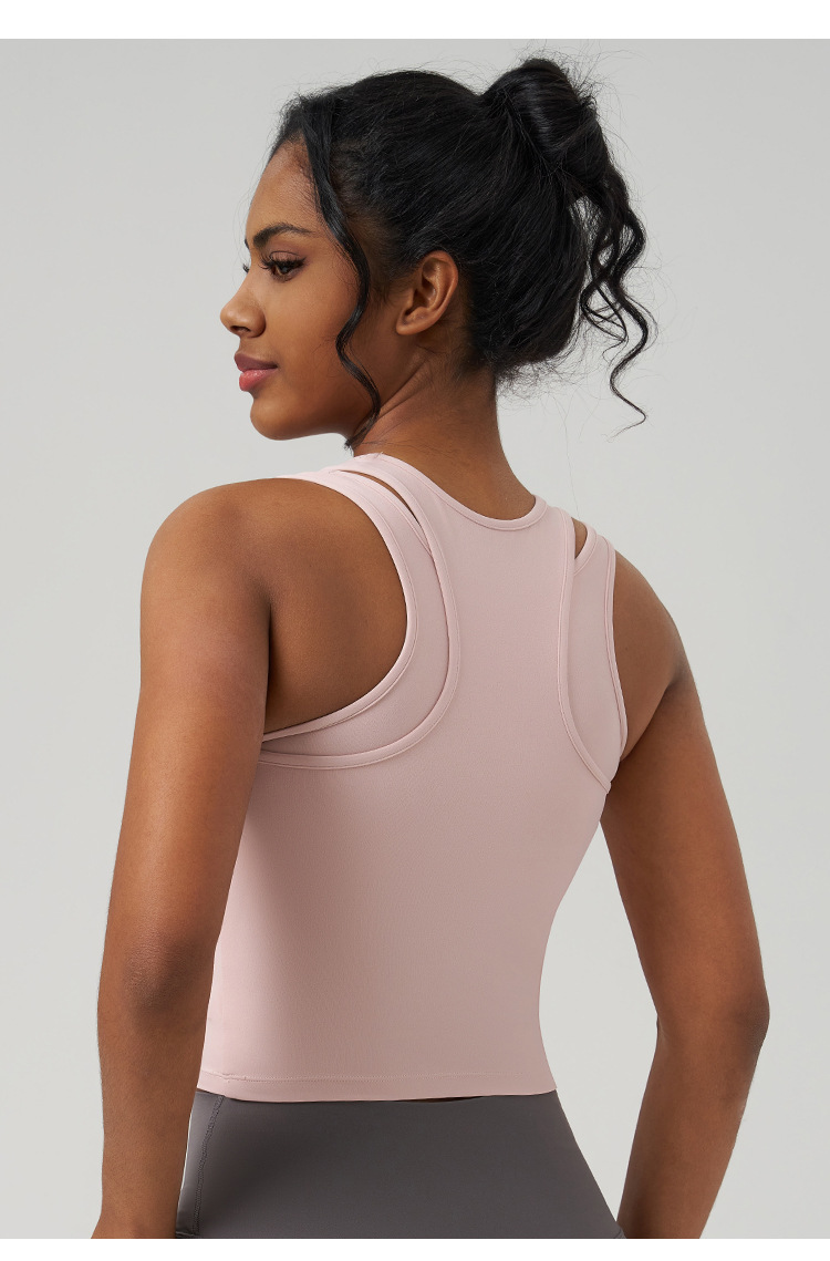 Chaleco de yoga falso de dos piezas con copa fija de una sola pieza, Correa ancha alargada