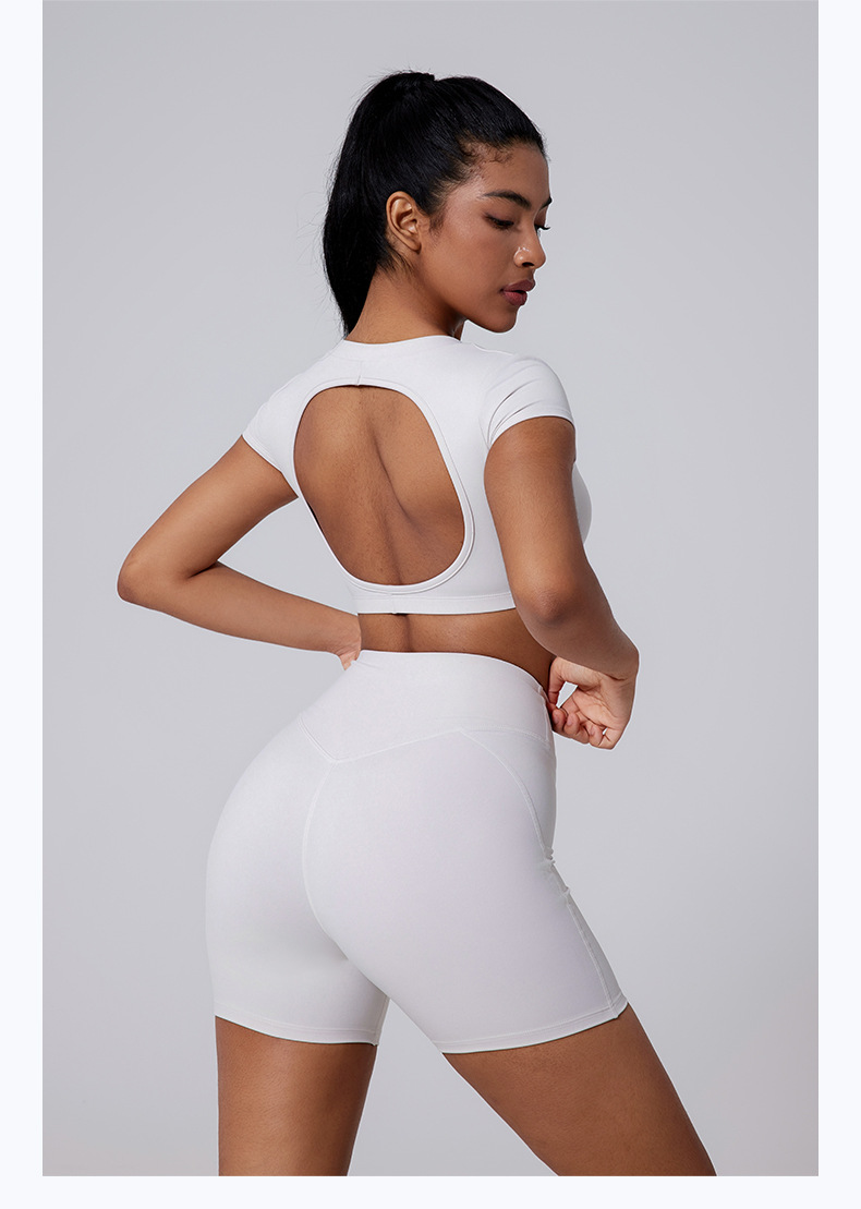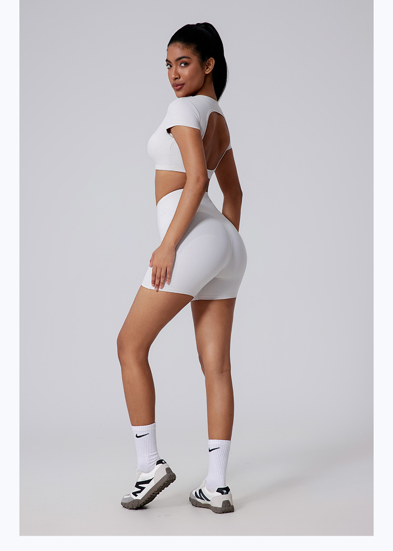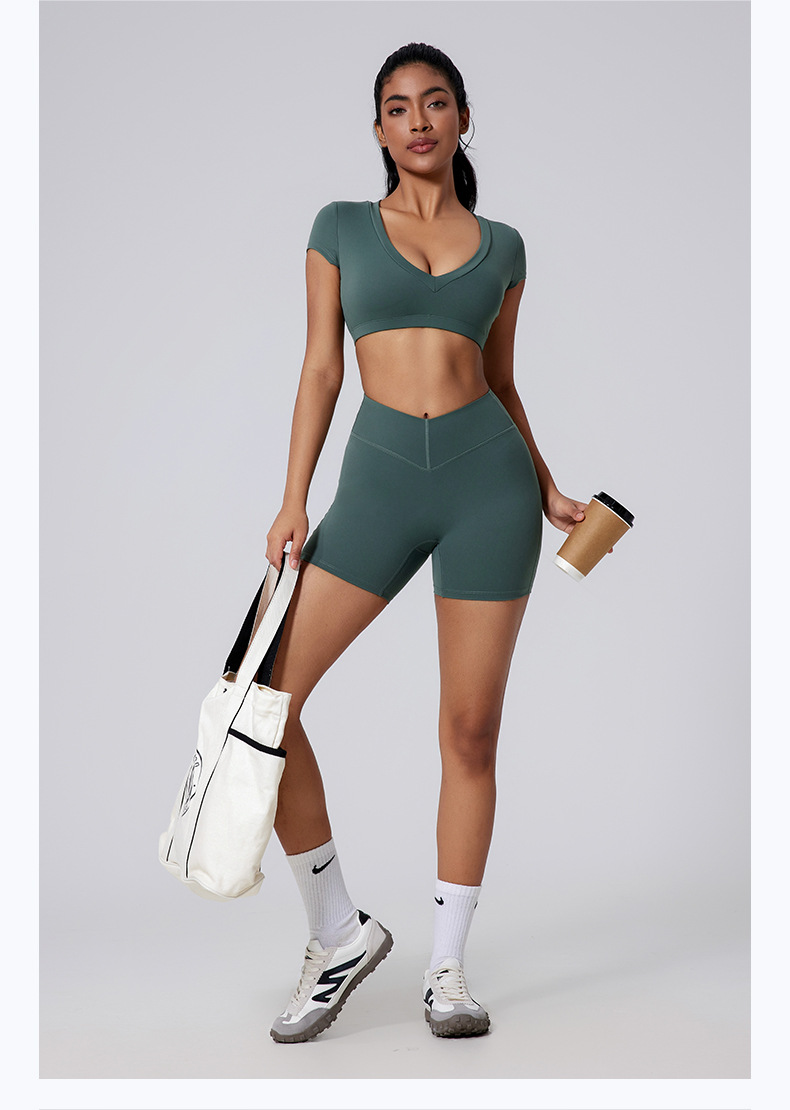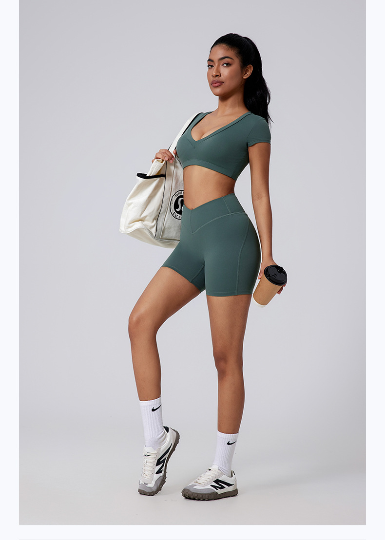 Brushed V-waist shaping sports peach skinny shorts